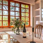 Gästerna kan också njuta av utsikten över trädgården. I badrummet finns även en bidé och en dusch. Det finns hårtorkar, badlakan och handdukar för gästernas komfort.